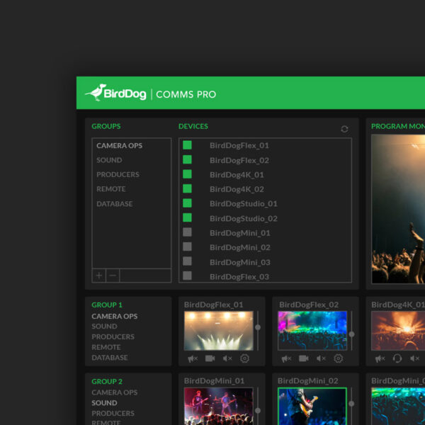 4K Family includes free Audio Intercom software, Comms Lite. Comms Lite supports four BirdDog devices and one Director. For more information on Comms Lite and how to get your free copy.