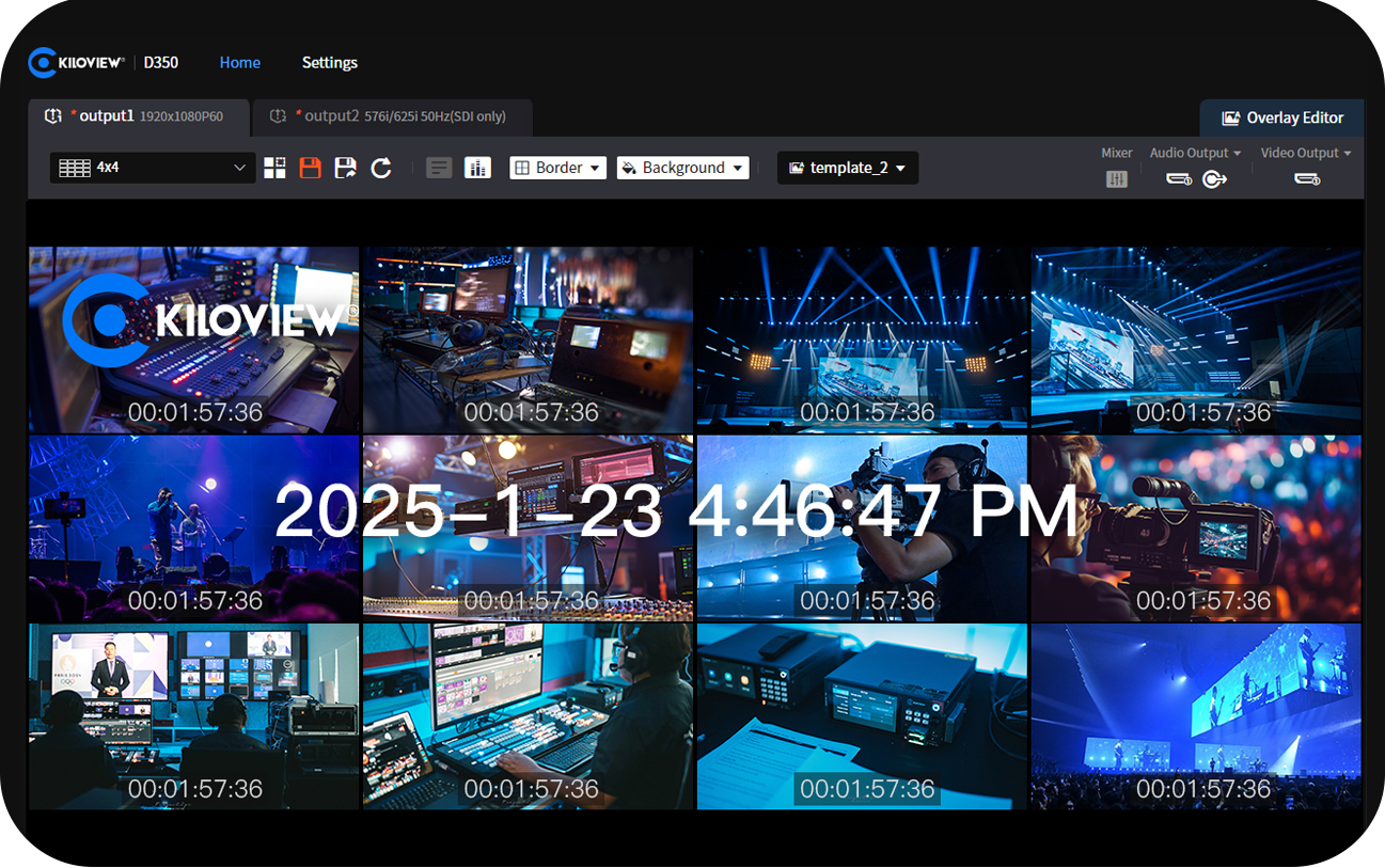 The newly added overlay editor feature of the D350 provides you with an unprecedented personalized output experience. You can freely create rich and colorful overlay templates for the output screen, incorporating various elements such as images, text, colors, and more (e.g., LOGO, borders, image-text overlays). The designed templates can be directly applied to the corresponding output screens, making the output more vibrant and personalized.