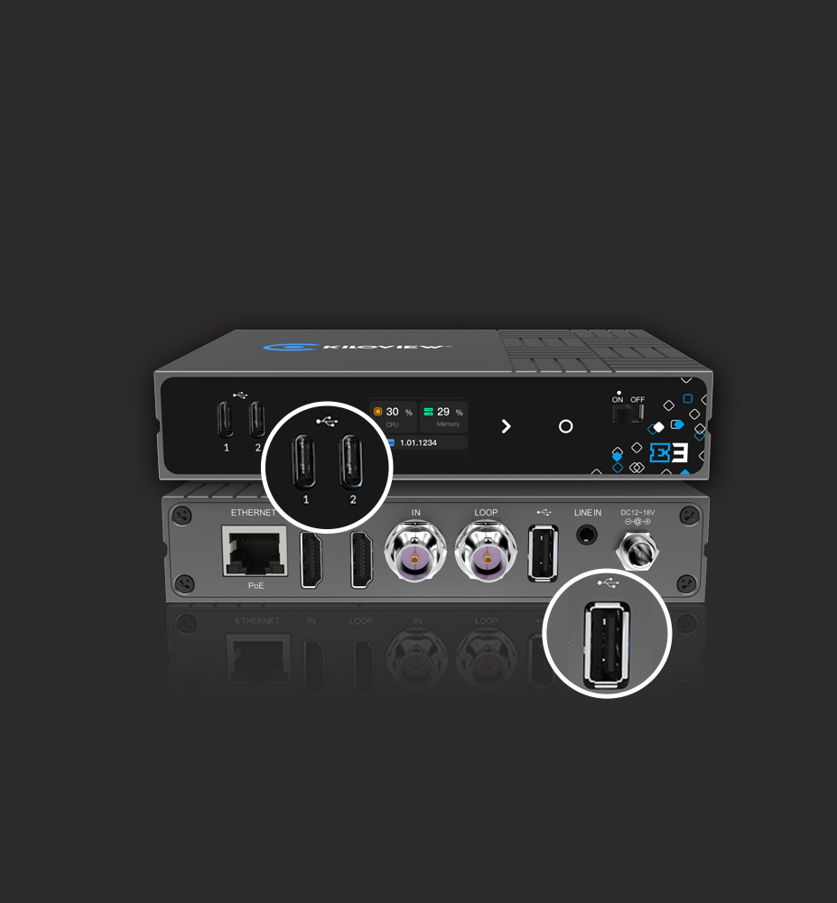 All inputs of E3 can be recorded in .MOV/.MP4 through 3 USB ports or NAS storage. It supports streaming and recording simultaneously for post-production and further application.