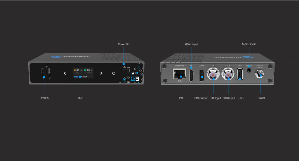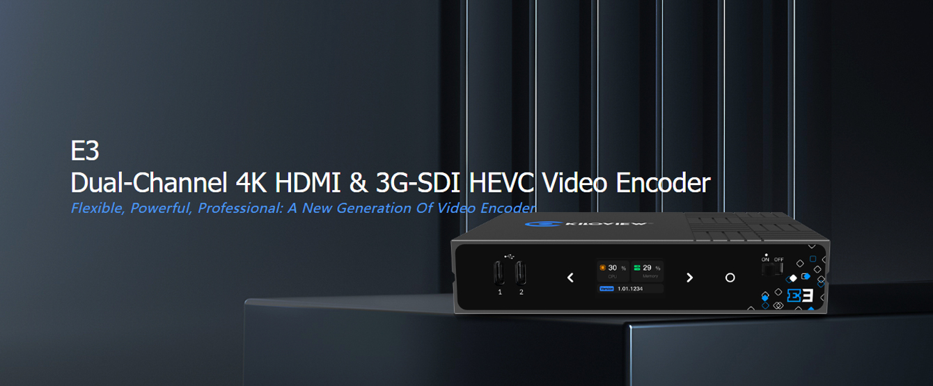 Kiloview E3 is a new generation of video encoder which builds on the capabilities of our original encoder models with new features of video input and loop through with HDMI up to 4K P30 and 3G-SDI up to 1080 P60, encoding both HDMI and 3G-SDI video by H.265 and H.264 simultaneously1 or either of the sources or a mix video from the both video sources with multi-protocols including NDI HX3/NDI HX2/SRT/RTMP/RTSP/UDP/HLS for either live production, post production, remote transmission, live streaming or recording in different industries. With the up-to-date chipset and HEVC technology, it supports streaming to 4 destinations with adjustable bitrate up to 120Mbps simultaneously.