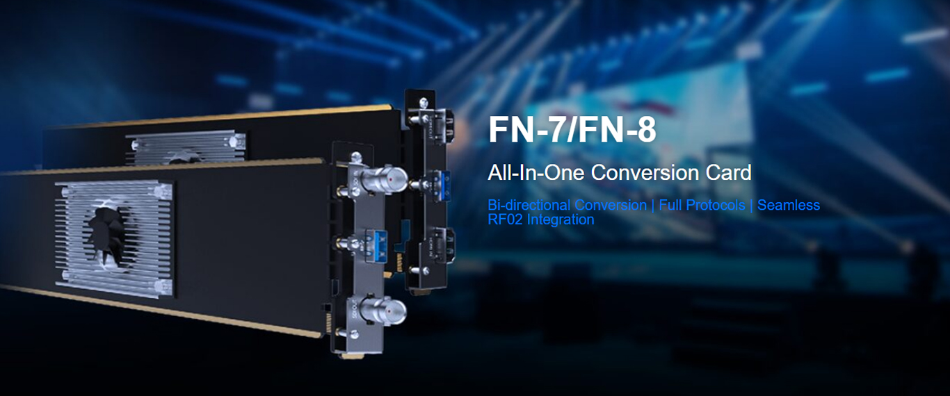 FN-7/FN-8 integrate encoding and decoding capabilities to enable seamless bidirectional conversion between SDI/HDMI signals and IP streams, supporting resolutions up to 1080p60. A single card bridges traditional baseband and IP-based production workflows, significantly enhancing deployment efficiency and system flexibility.