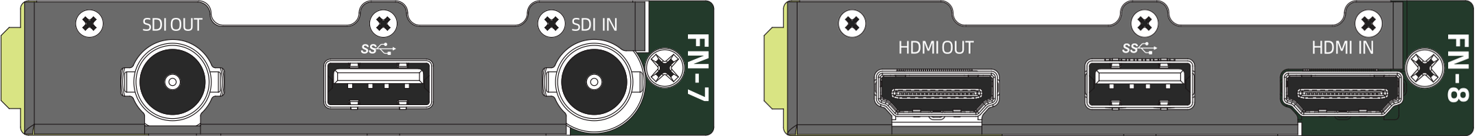 FN-7: Handles 3G-SDI input and loop-out, or decodes IP streams directly to 3G-SDI output.