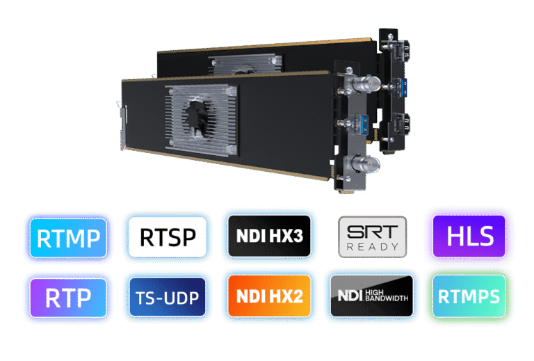 These cards are widely compatible with multimedia protocols such as NDI HighBandwidth, NDI HX2/HX3, SRT, RTMP, RTSP, HLS, UDP, and RTP. Deeply integrated with RF02, they support centralized power supply, unified management, and flexible expansion, making them suitable for broadcasting, video conferencing, remote production, educational streaming, and other applications