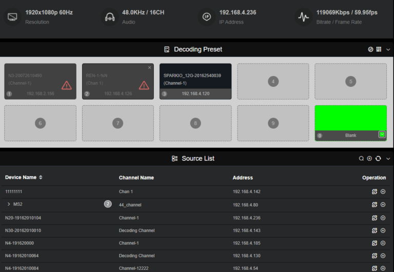 In decoding mode, pre-set up to 9 NDI sources and switch instantly via the web interface—no blackouts, stutters, or signal loss. Transition timing can be adjusted to fit your live production.