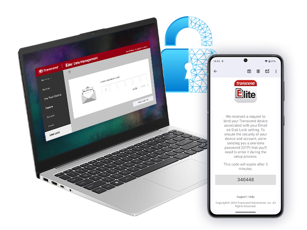 Forgot your disk password? No worries! The ESD310 supports a one-time password (OTP) function. Simply click "Forget Password" on Transcend Elite, and a one-time password will be sent to your designated e-mail. Enter the password in the Transcend Elite to unlock your ESD310.