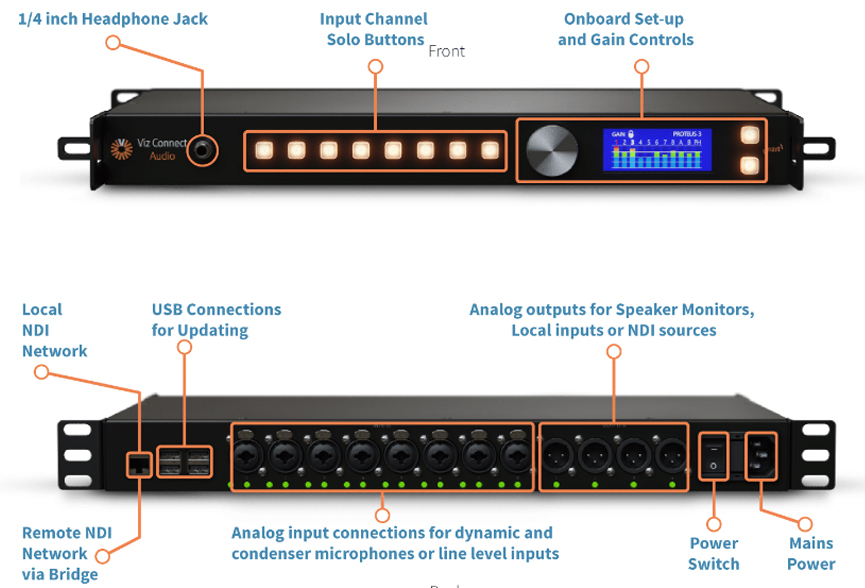 Viz Connect Audio offers more connectivity, visibility, and control of audio sources on an NDI network than ever before. Connect your mic or line-level analog audio sources, convert to NDI, and share to your TriCaster or across your network – all while being able to access and monitor those sources, ensuring consistent quality.